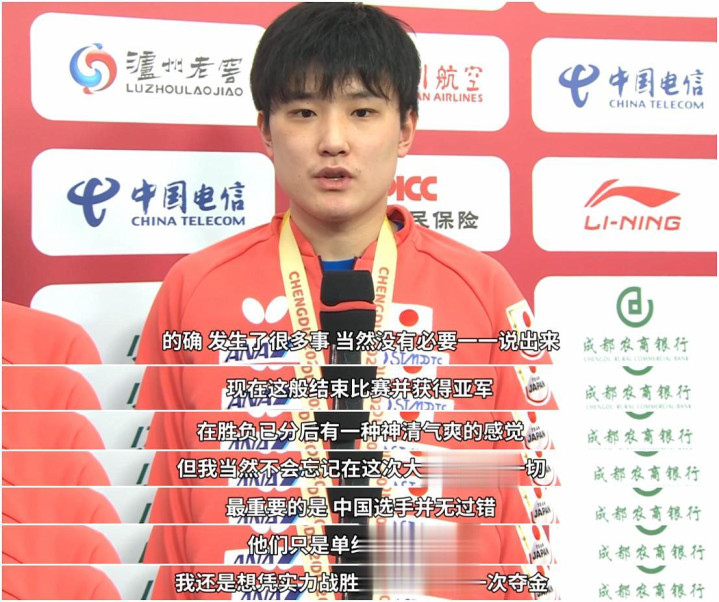 决赛后的采访中,当中国记者发问时,张本智和全程使用日语回答,莫得说中语,这一举动进一步激勉了成齐球迷的不悦,概况恰是这些复杂的赛场表里成分,组成了张本智和口中“发生了许多事”的具体本色:决赛规模后,日本记者向张本智和发问:“这一次是与多样成分作接触的比赛,您如何看待此次比赛呢?”张本智和的回答显得苦心婆心:“真是发生了许多事,虽然也莫得必要逐个说出来,现时这般规模比赛并获取亚军,在输赢已分后有一种赏心悦方针嗅觉,但我虽然不会健忘在此次大赛阅历的一切。”当被问及对中国选手的主张时,他明确闪现:“我对中国选手并无任何怨言,他们便是实力很强,我照旧思凭实力驯服他们,争取下一次夺金。”